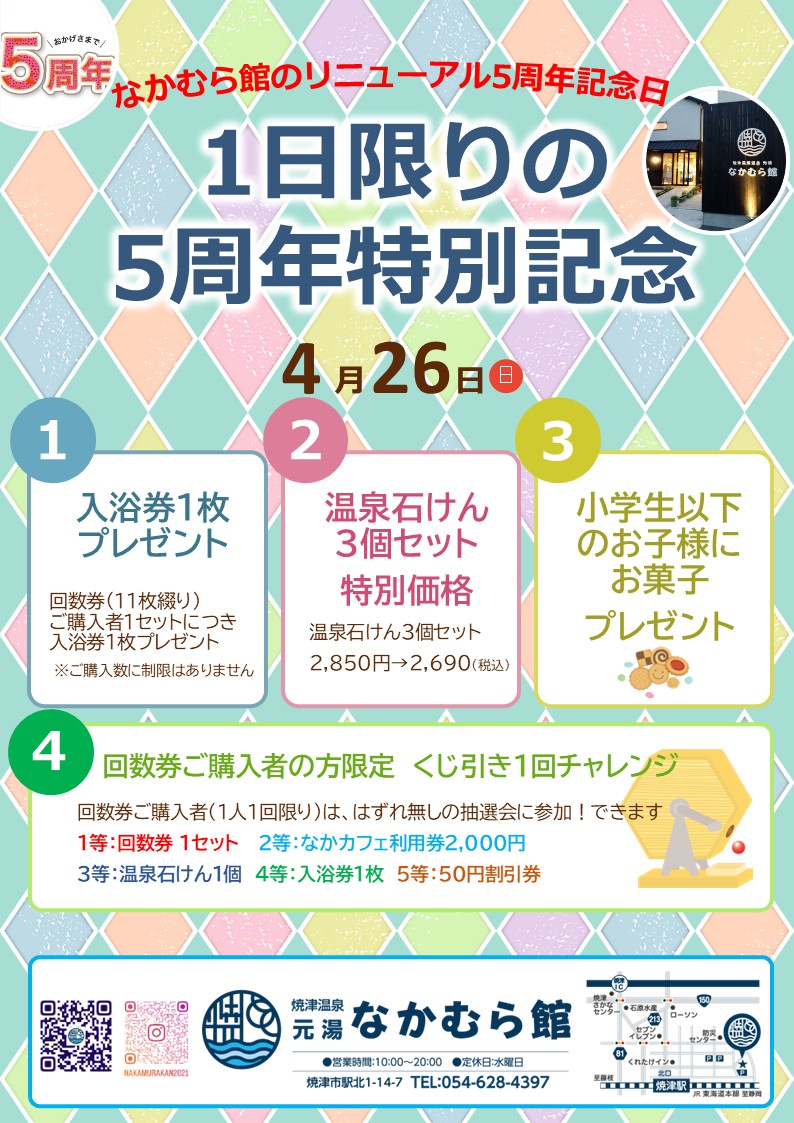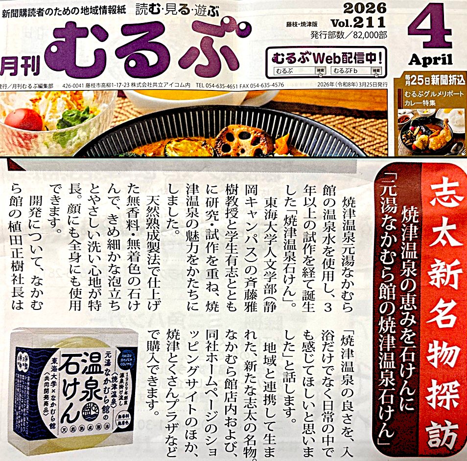 焼津市内で希少な100%完全源泉かけ流し温浴施設として、昭和34年創業以来、60余年の歴史をもつ公衆浴場施設「焼津温泉 元湯なかむら館」。2021年のリニューアルで、温泉浴槽の拡張や新たに露天風呂やスタジオ、カフェレストラン等を併設した複合型の温泉施設へと生まれ変わりました。