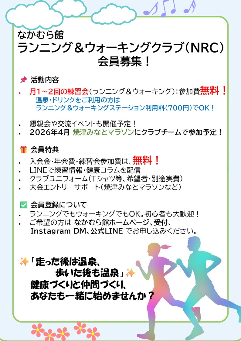 なかむら館ランニング&ウォーキングクラブ(NRC) 入会募集&クラブ発足会(11月8日〈土〉)ご案内! ✨入会金・年会費・参加費すべて無料!✨